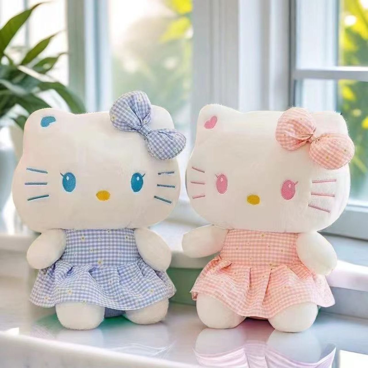 The Hello Kitty plush stands up and has a cute look that kids will love. It has a charming face, a signature bow, and good details. Available in different colors, it adds fun whether it’s a gift or part of a collection.