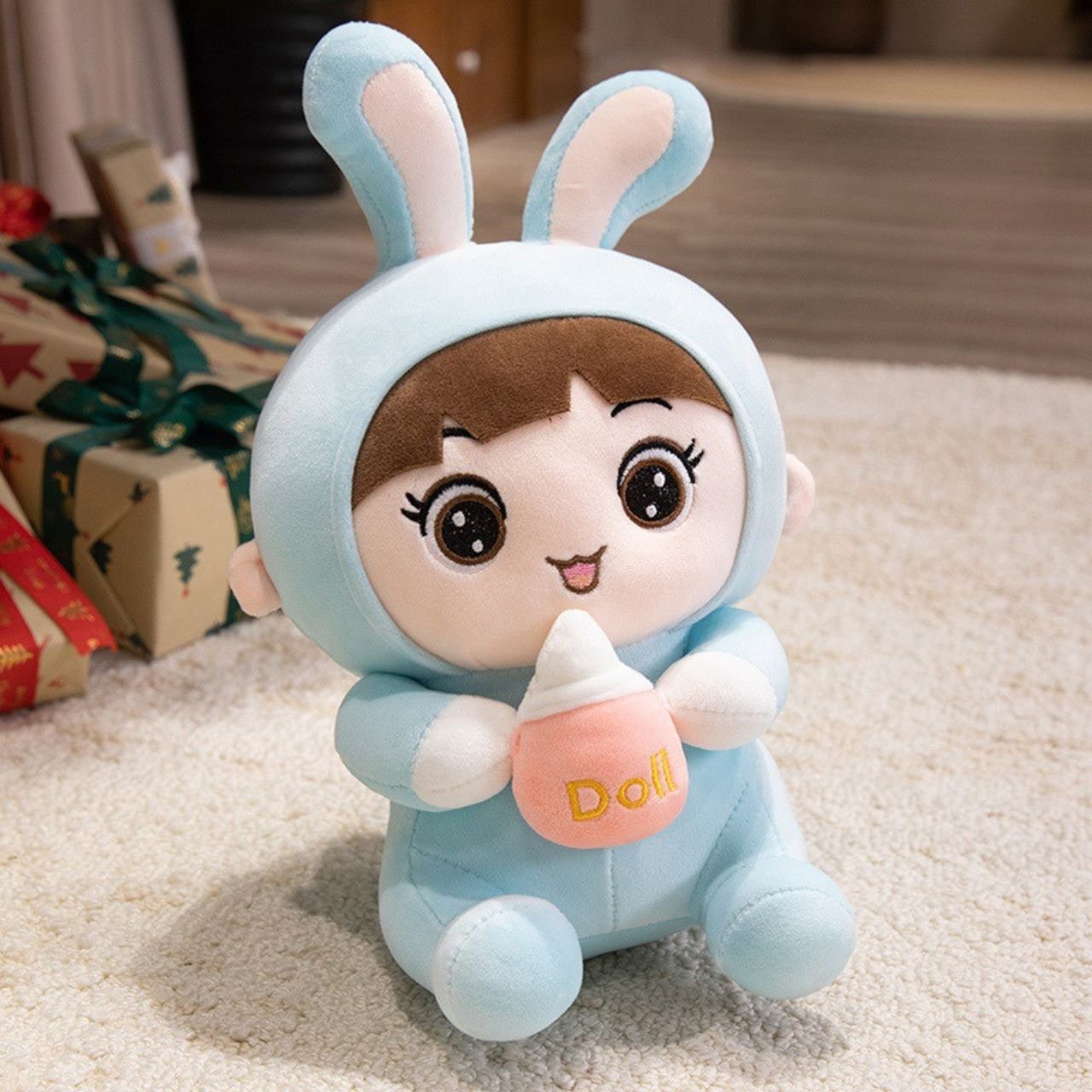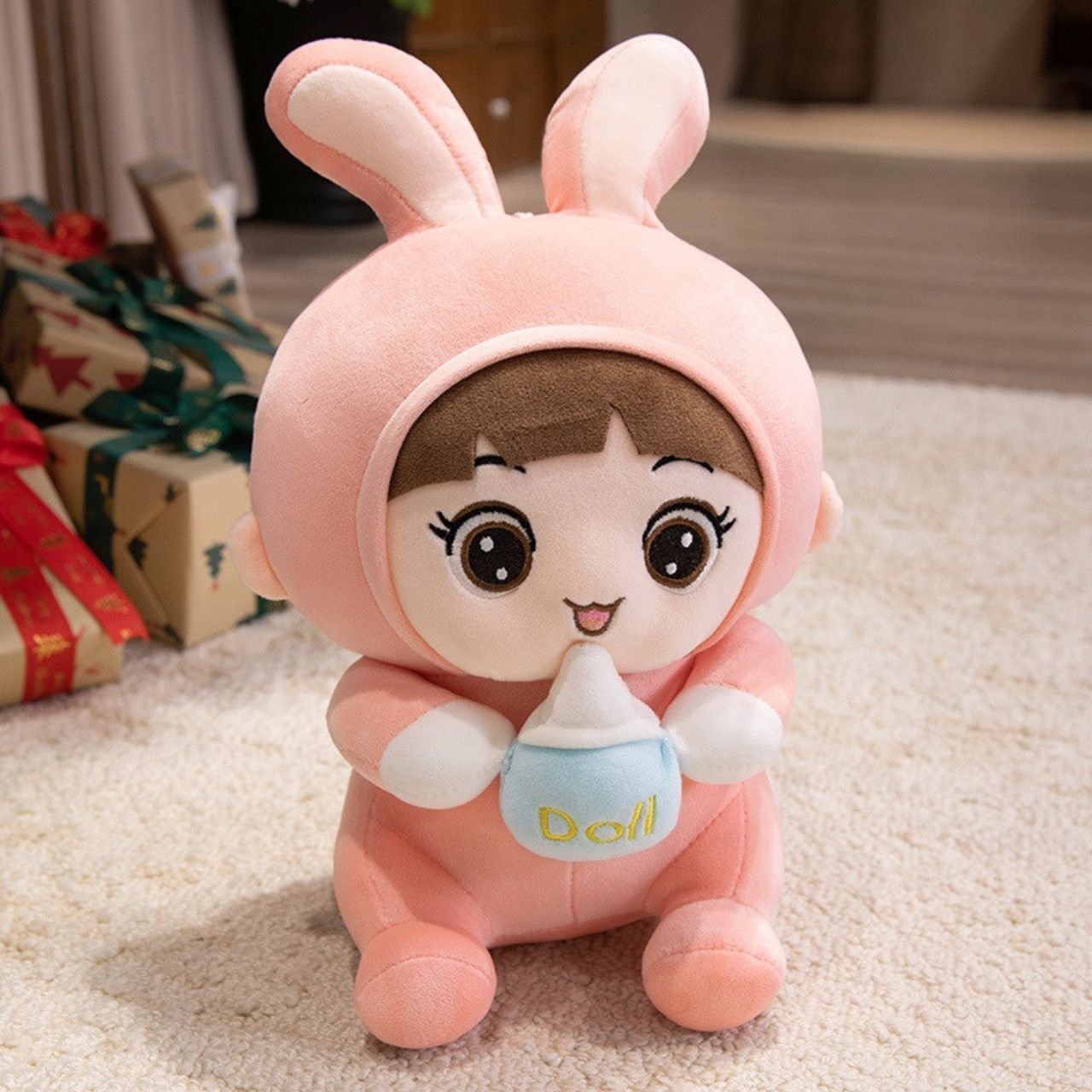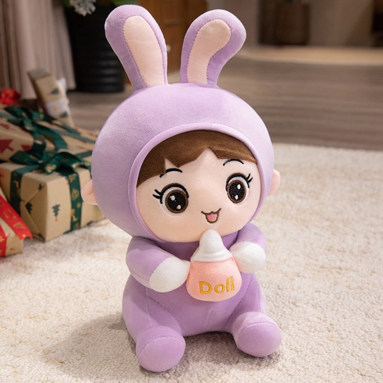 The Cute Baby Doll Plush Toy is lightweight and just the right size for small hands, making it easy to carry around the house or on trips. Its big bunny ears add a fun touch, encouraging kids to use their imagination while playing.