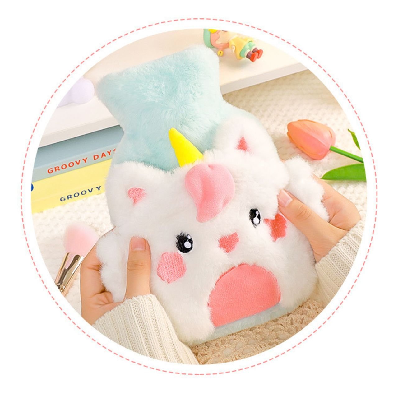 Stay warm and comfy with the Cute Cartoon Shape Plush Hot Water Bag with Pocket. This upgraded hot water bottle is perfect for modern life. It holds 500 ml of water and keeps you warm for a long time, all wrapped in a soft, plush cover. It has a pocket in front to warm your hands and is great for soothing your stomach or back.
