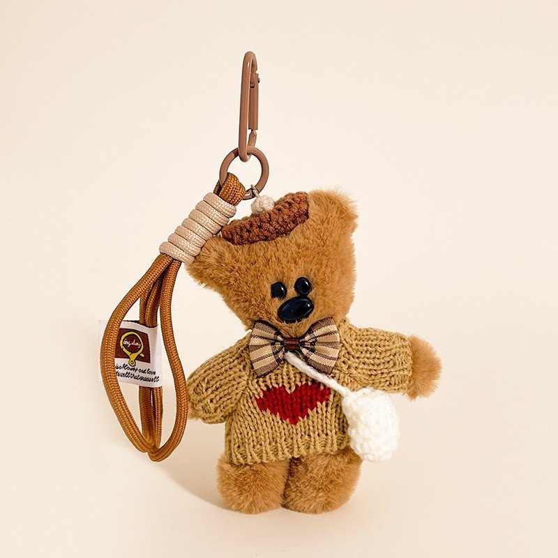 Cute Korean Style Mr. Bean Bear Plush Keychain with Lanyard | 12 CM | Bag Charm | Loose Packing