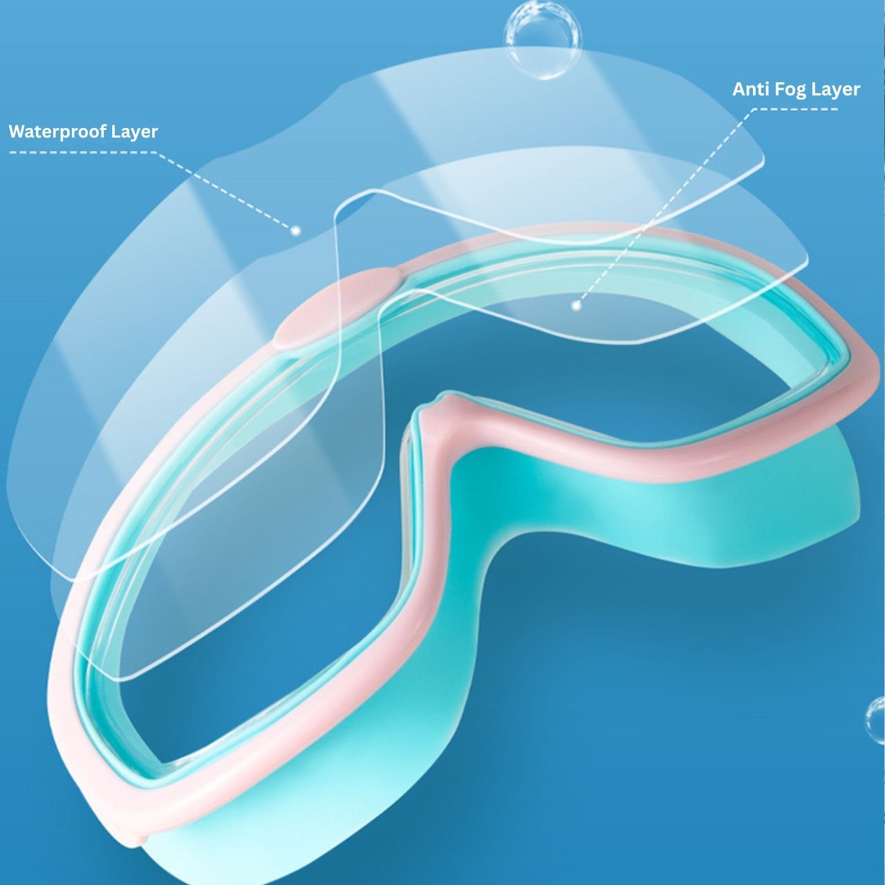 Give your kids a better swimming experience with these large frame kids swim goggles. The wide lens design provides a clear and broad view underwater, helping kids feel more confident while swimming.