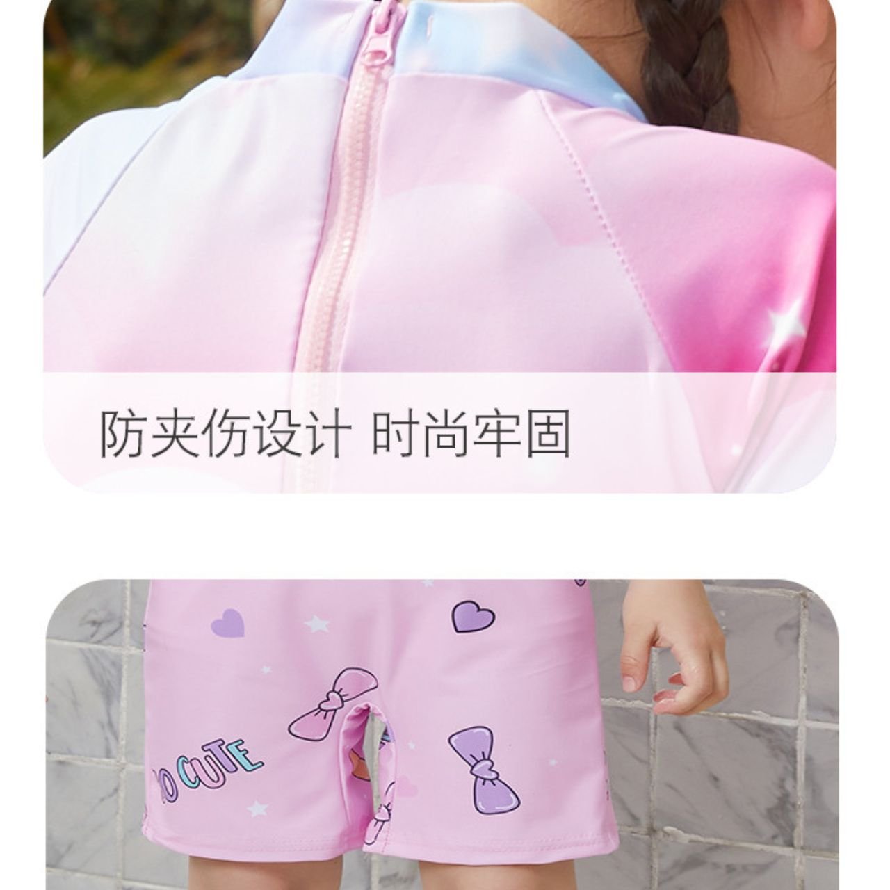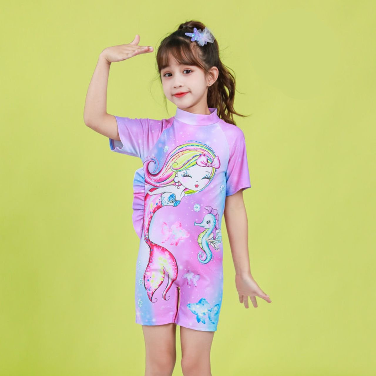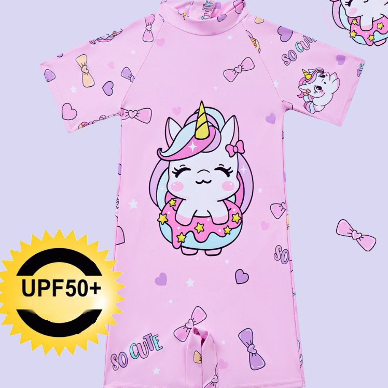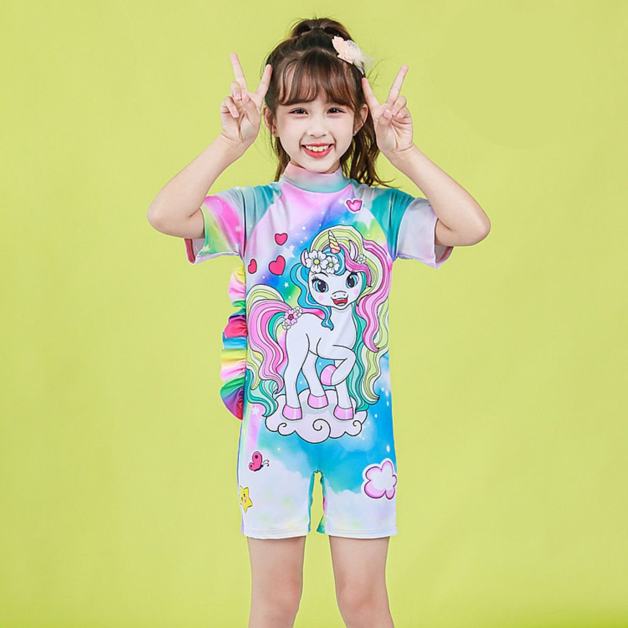 The half sleeves provides extra coverage, while the back side zip closure makes it easy to wear and remove. Also the fun cartoon design and assorted colors make it attractive for kids.