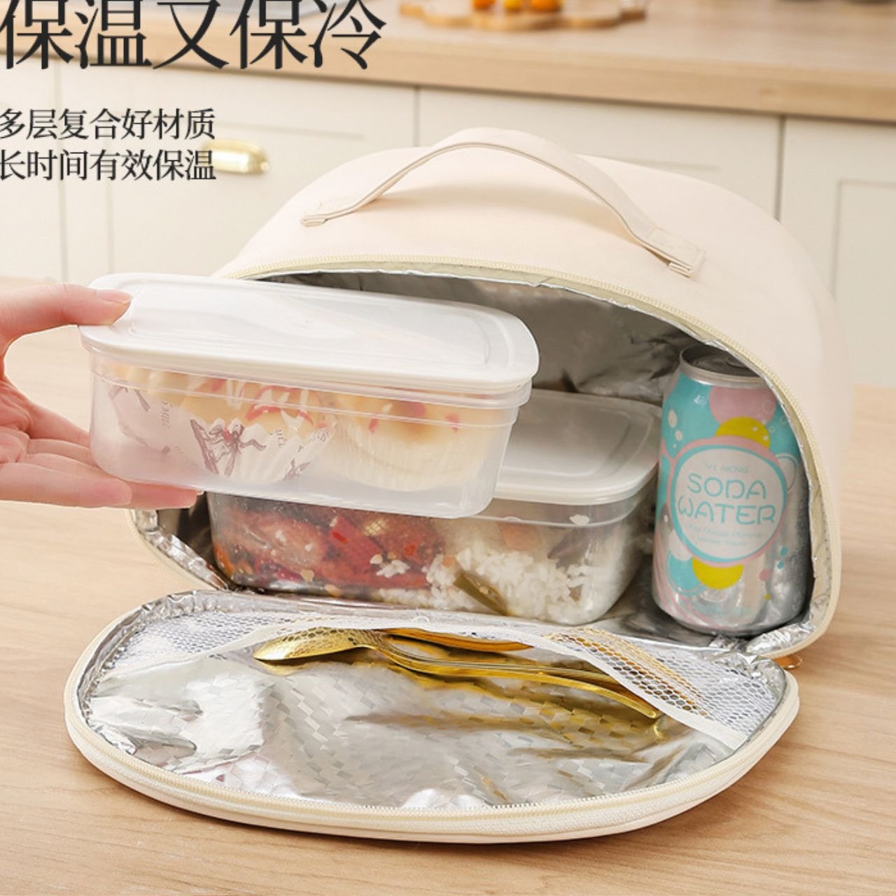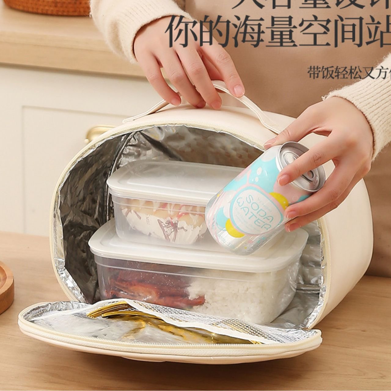 It has a spacious interior where you can easily store your lunch boxes, snacks, fruits, and drinks. The zip closure keeps everything safe and secure, while the sturdy handle makes it easy to carry to office, school, travel, or picnics.