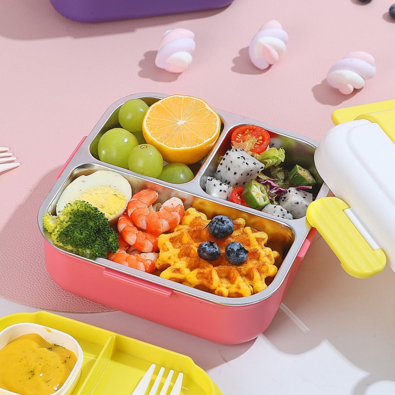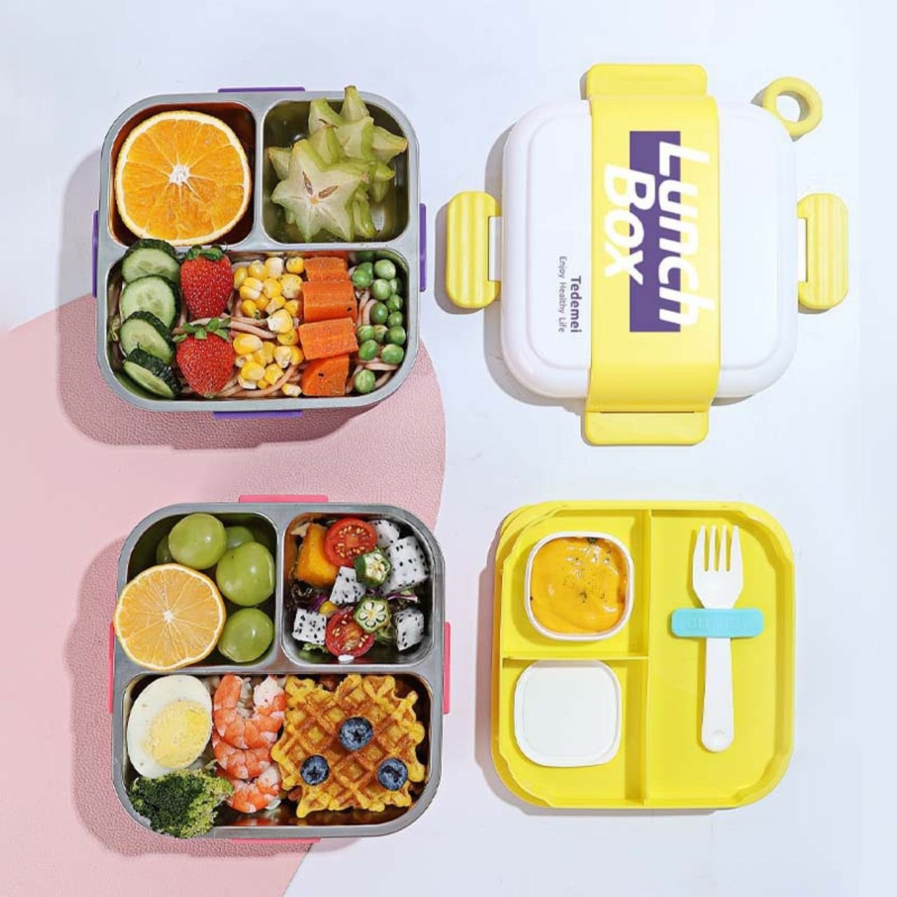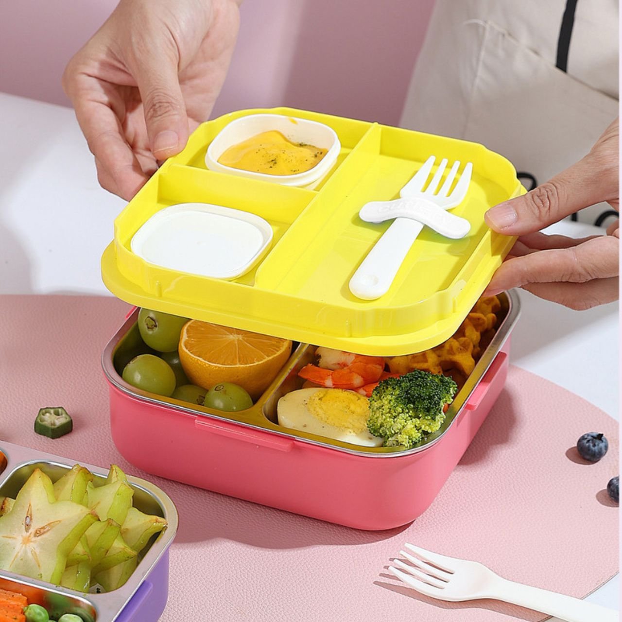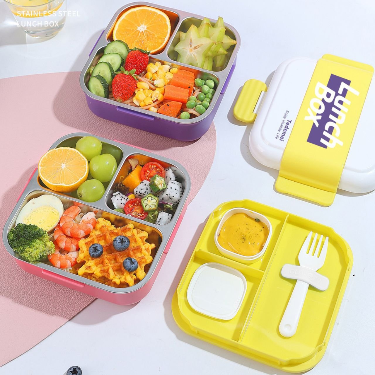 Enjoy fresh and tidy meals every day with the stainless steel 3 compartment lunch box, combining usefulness, durability, and style.