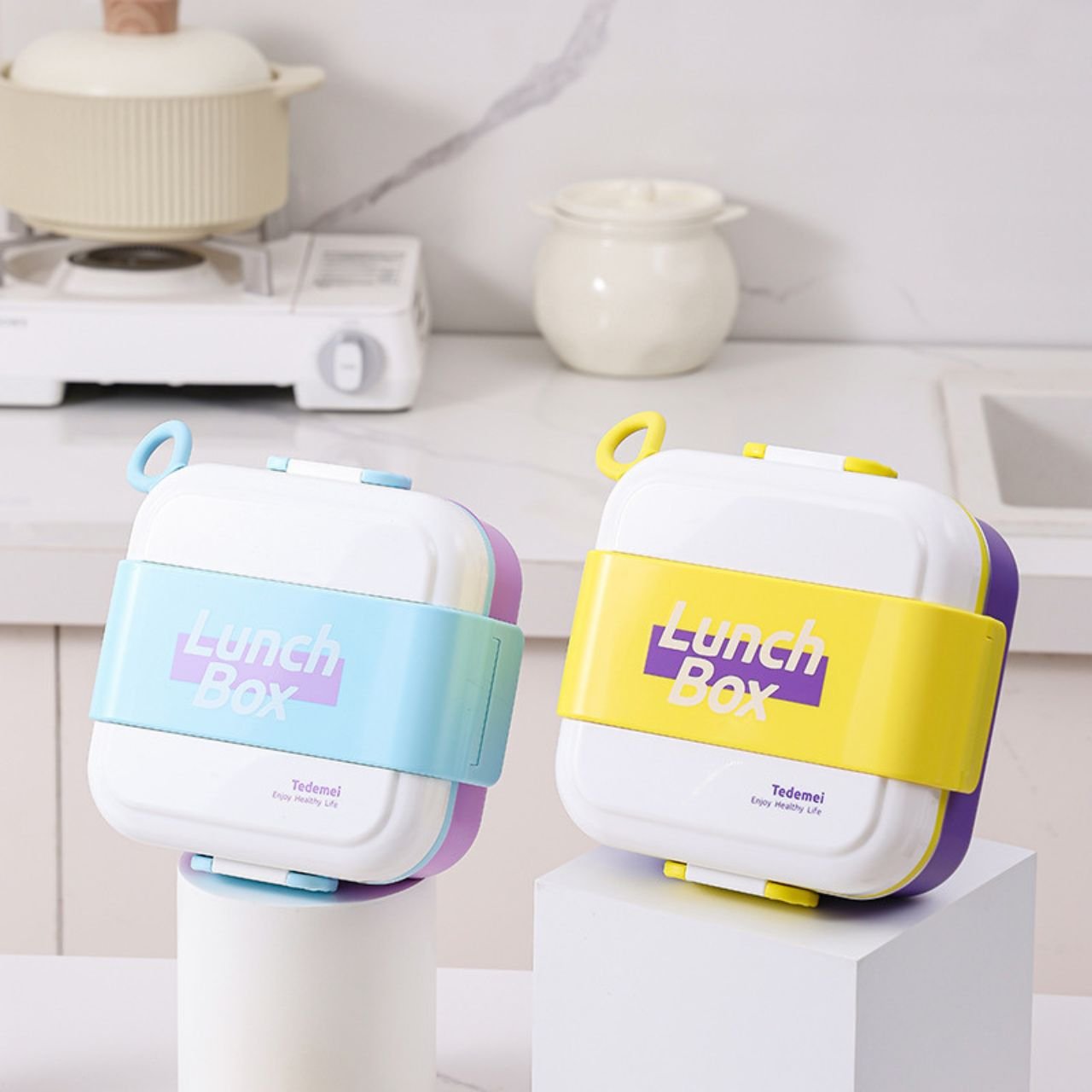 With a 600 ml size, this lunch box is just the right for one meal and fits easily in bag, It is lightweight and has modern square shape that is easy to stack and store.