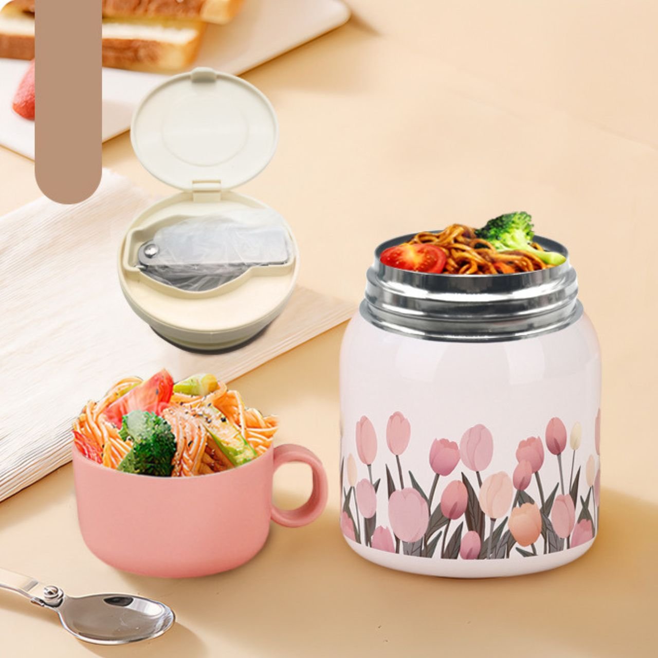 With its string stainless steel, thermal insulation, folding spoon, and pretty designs, the stainless steel insulated food bowl is great choice for anyone who wants warm meals on the go.