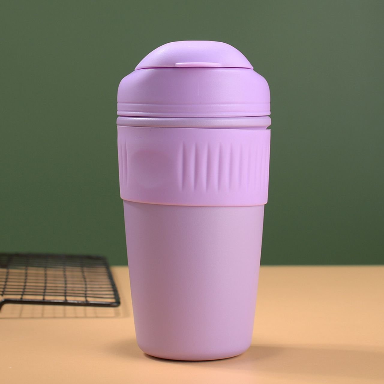 The mug comes with a dual drinking system, allowing you to sip directly or use it as needed for convenience. Also the silicone sleeve provides a comfortable, non slip grip and protects your hands from that.