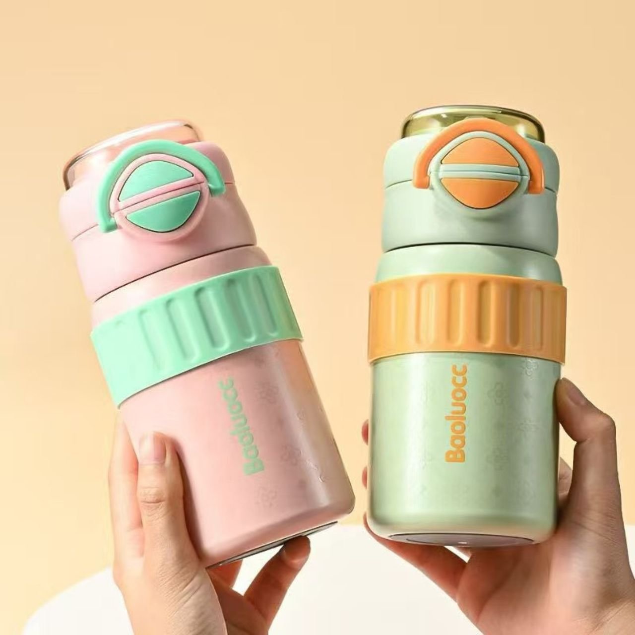 The bottle has double wall insulation to keep drinks hot or cold longer. It prevents the outside from getting wet, making it easy for kids to hold.