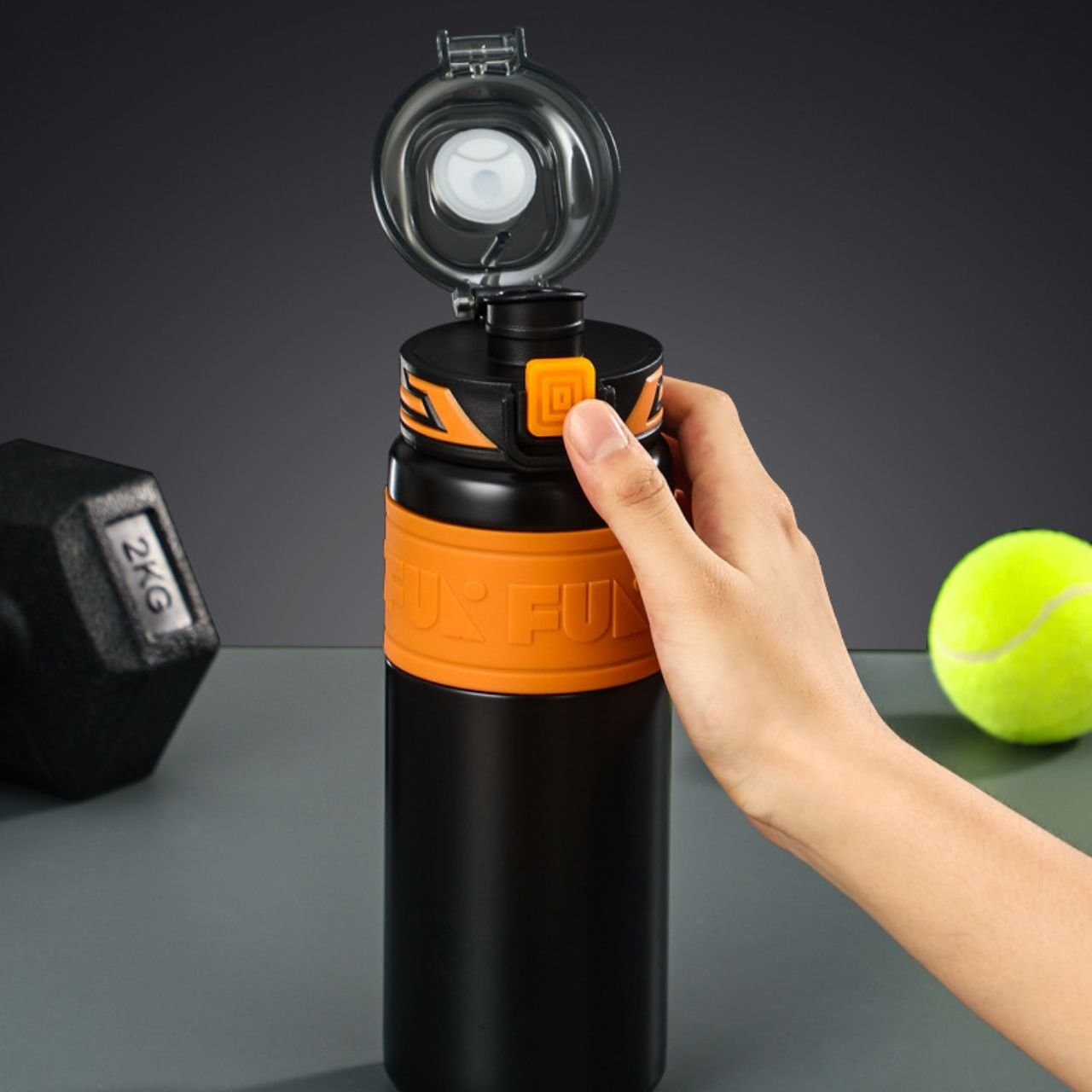The soft silicone sleeve helps you hold the bottle better and protects it from scratches and bumps. It also gives a sporty look.