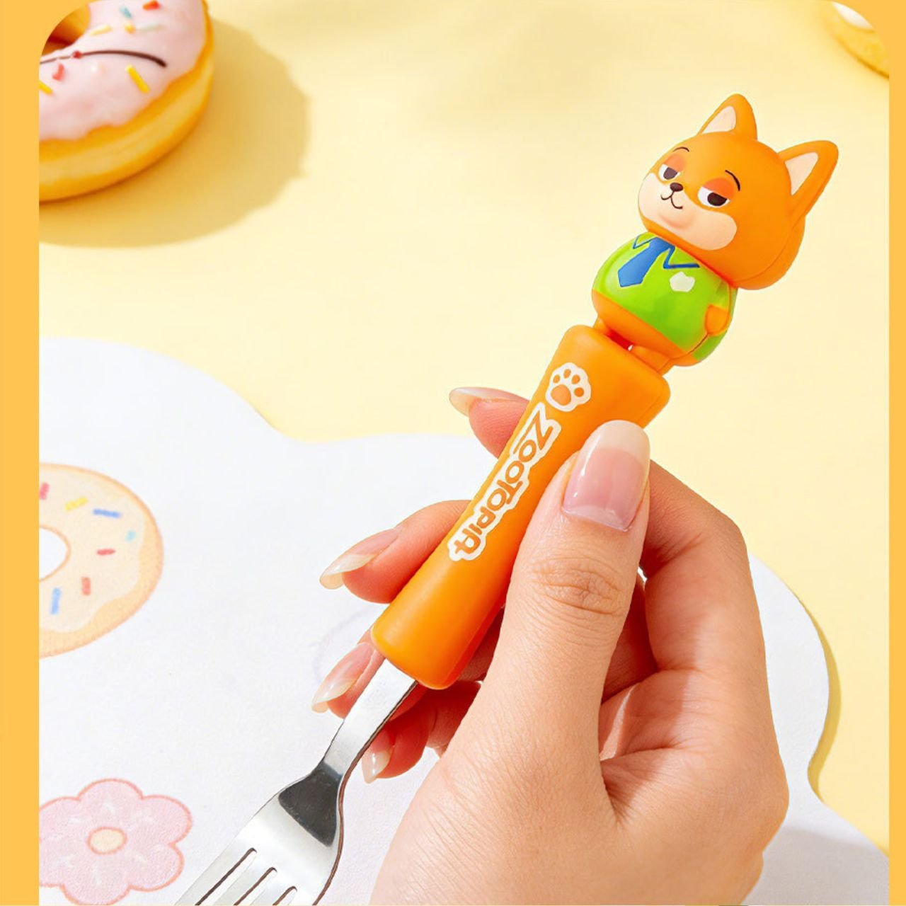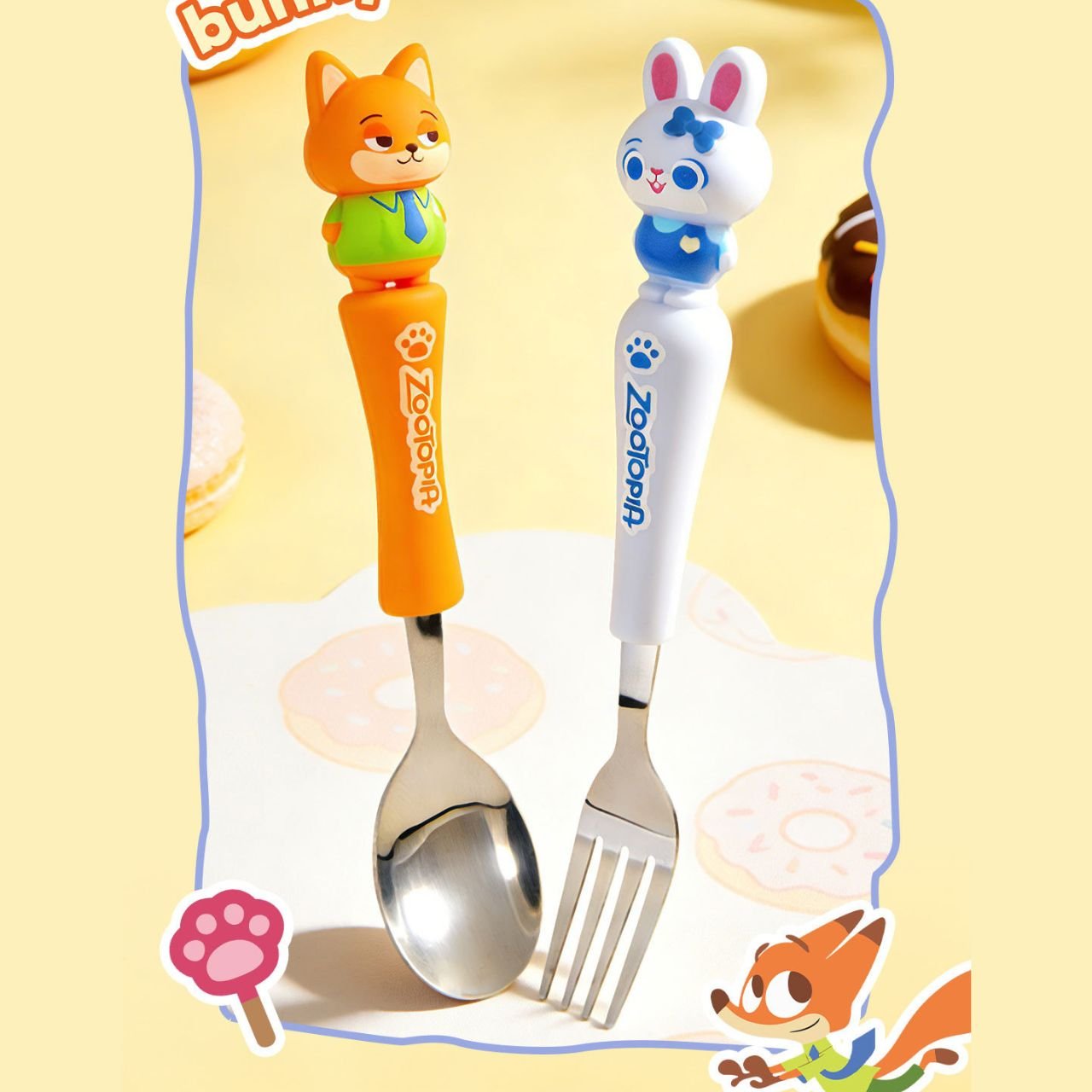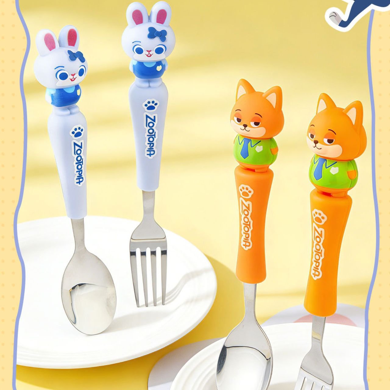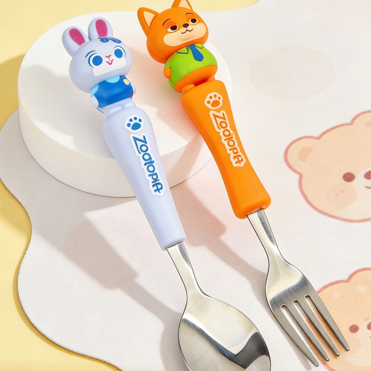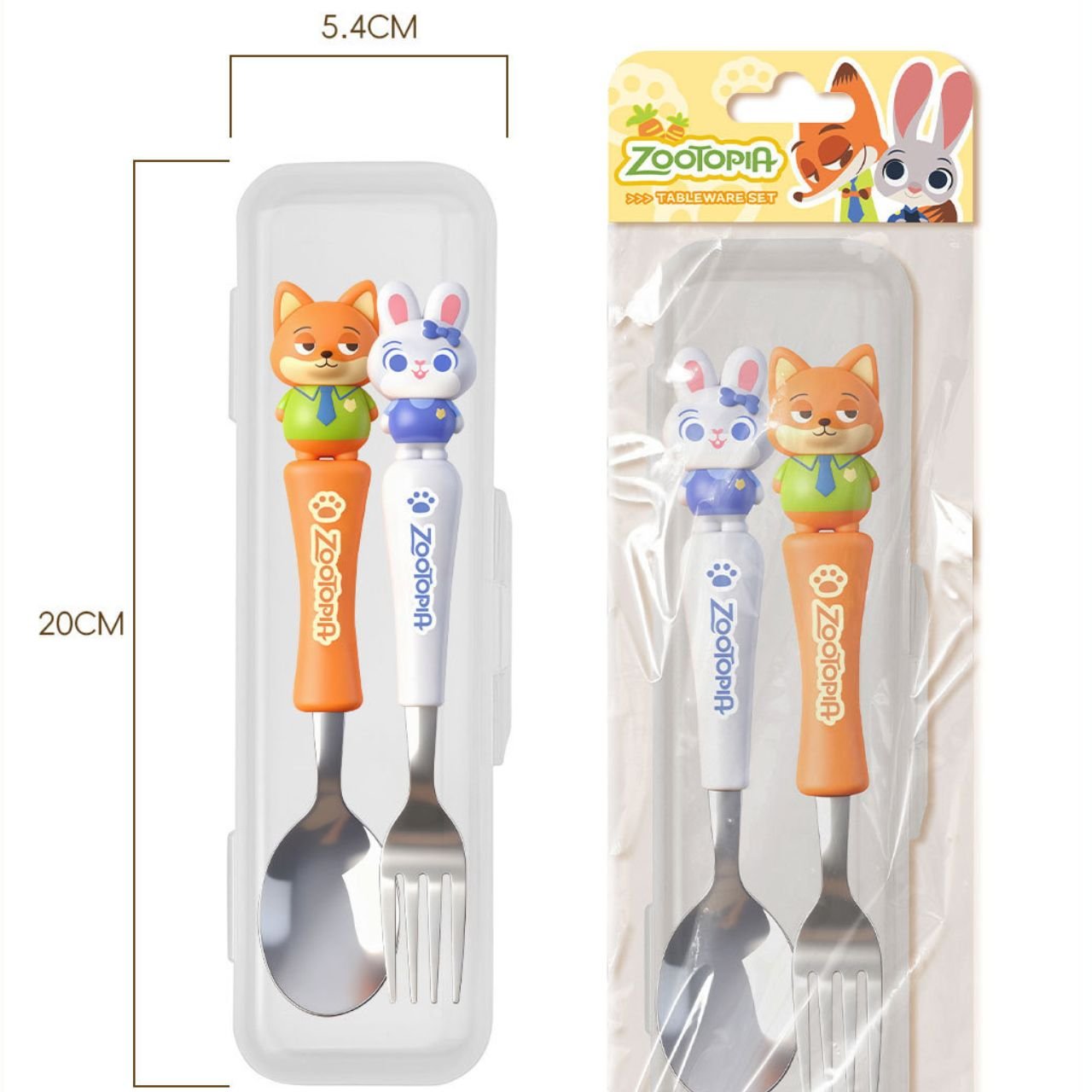 The spoon and fork are made from stainless steel, which is safe and long lasting. The smooth edges make them gentle for kids to use. It also comes with a plastic box, so you can carry it easily for school, travel, or outings.