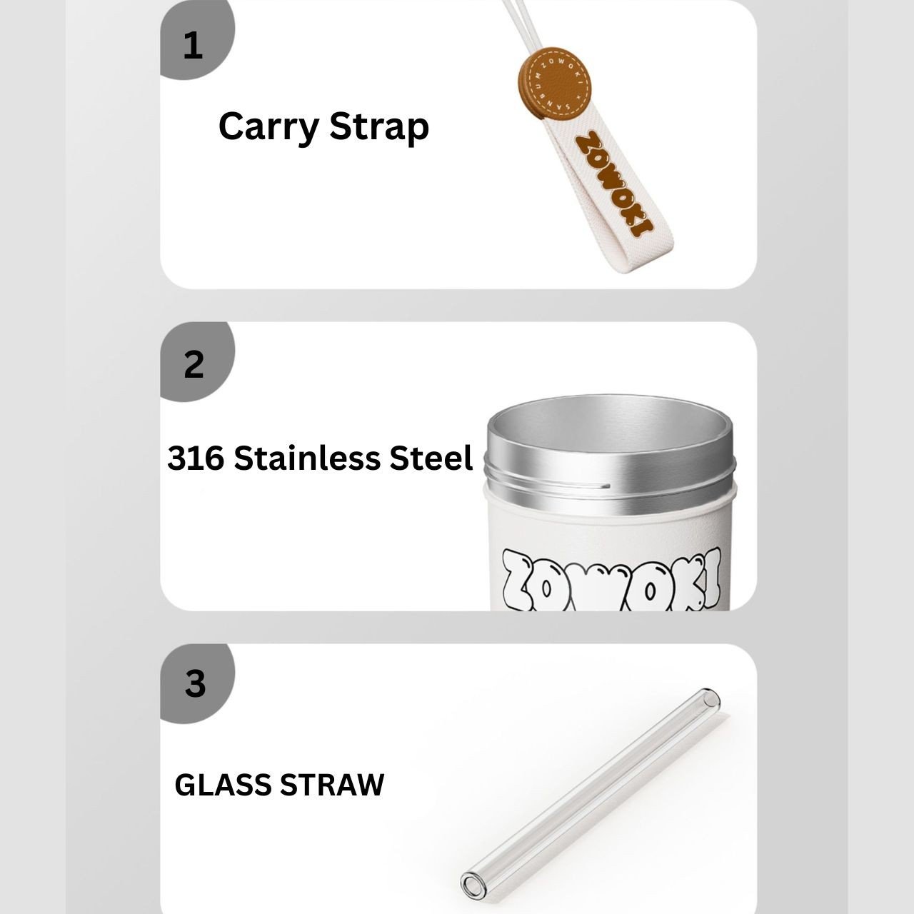 Made from high-quality stainless steel, this travel sipper is tough, won’t rust, and is safe for daily use. It keeps your drinks tasting great and works well for a long time. With double-wall insulation, it keeps drinks hot or cold for many hours, perfect for coffee, tea, or cold drinks all year round.