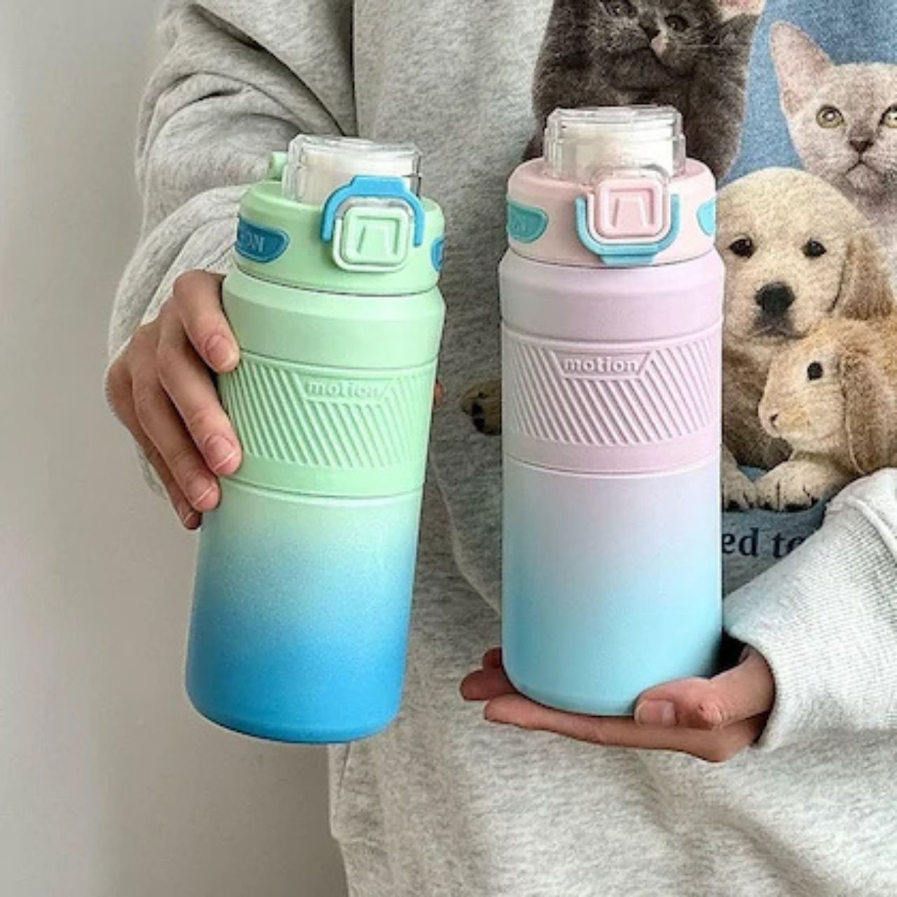 Stay hydrated with this 500 ML stainless steel vacuum insulated water bottle. It has a modern two-tone look and a soft silicone sleeve, making it great for everyday use at work, school, the gym, or while traveling.
