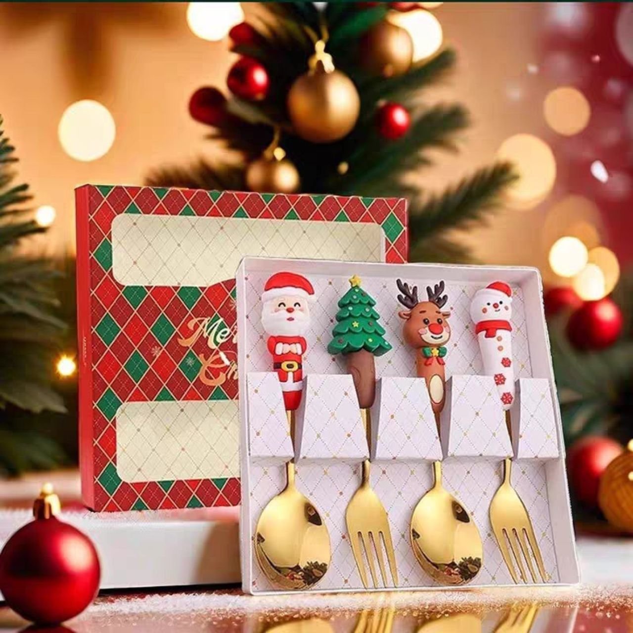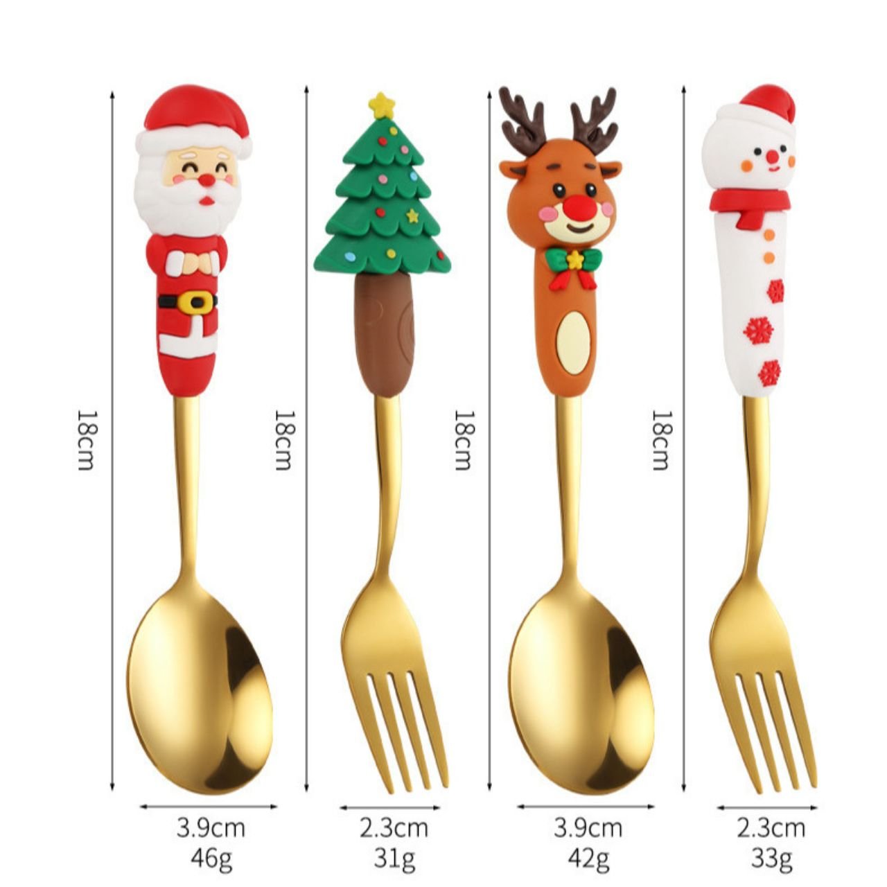- Â 4-piece set with Christmas designs: 2 spoons and 2 forks.